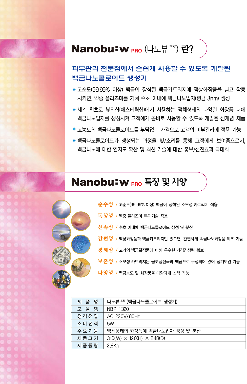 세계 최초! 피부 관리 전문점에서 손쉽게 사용할 수 있도록 개발된 백금 나노콜로이드 생성기